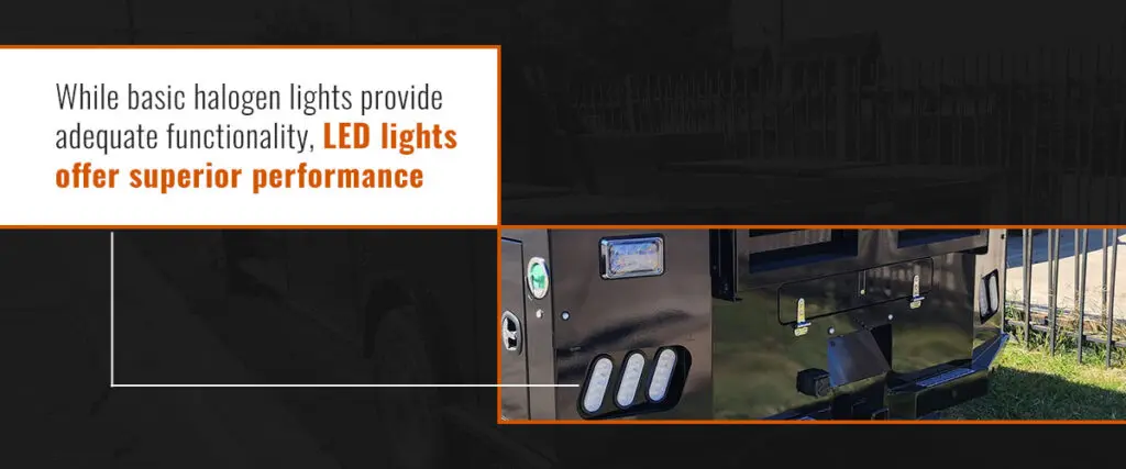 Since fog and darkness create visibility challenges, your truck requires powerful lighting. While basic halogen lights provide adequate functionality, LED lights offer superior performance. In terms of brightness and clarity, LED lights excel, offering intensity and a degree of coolness that improves visibility.